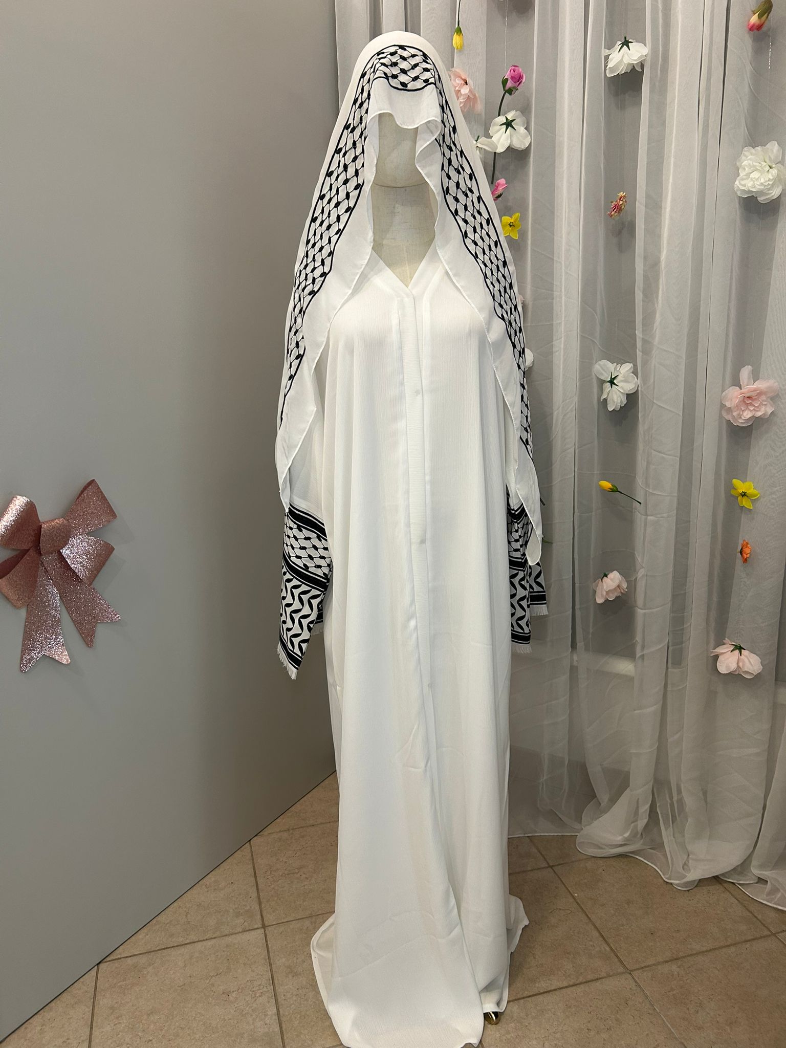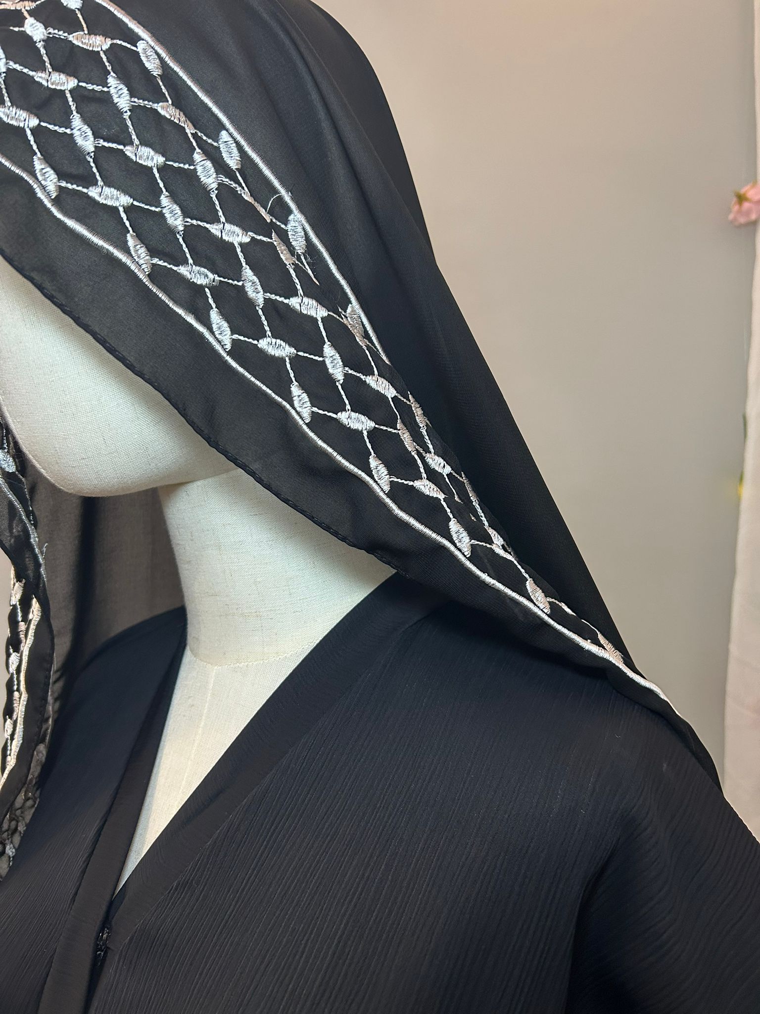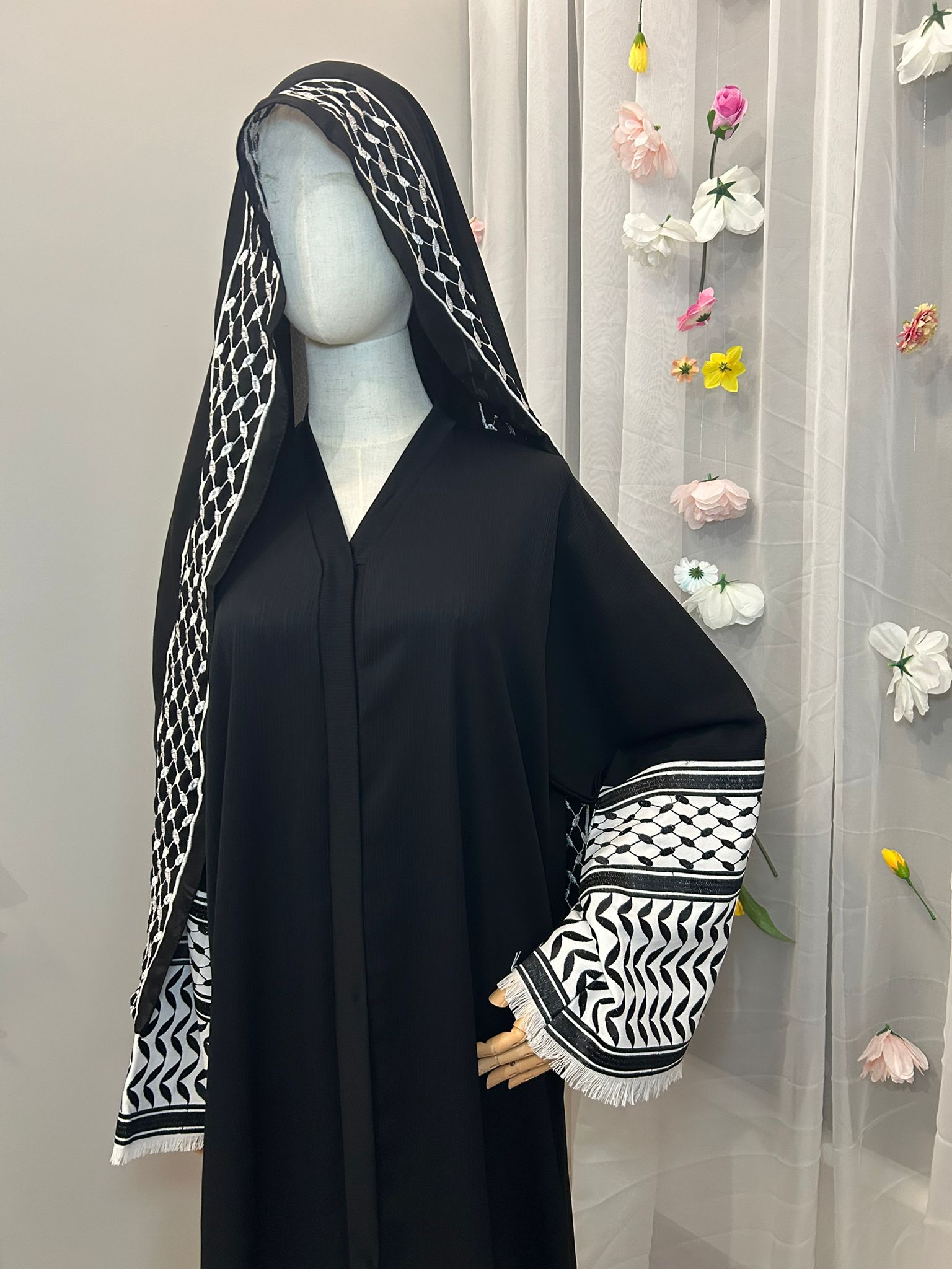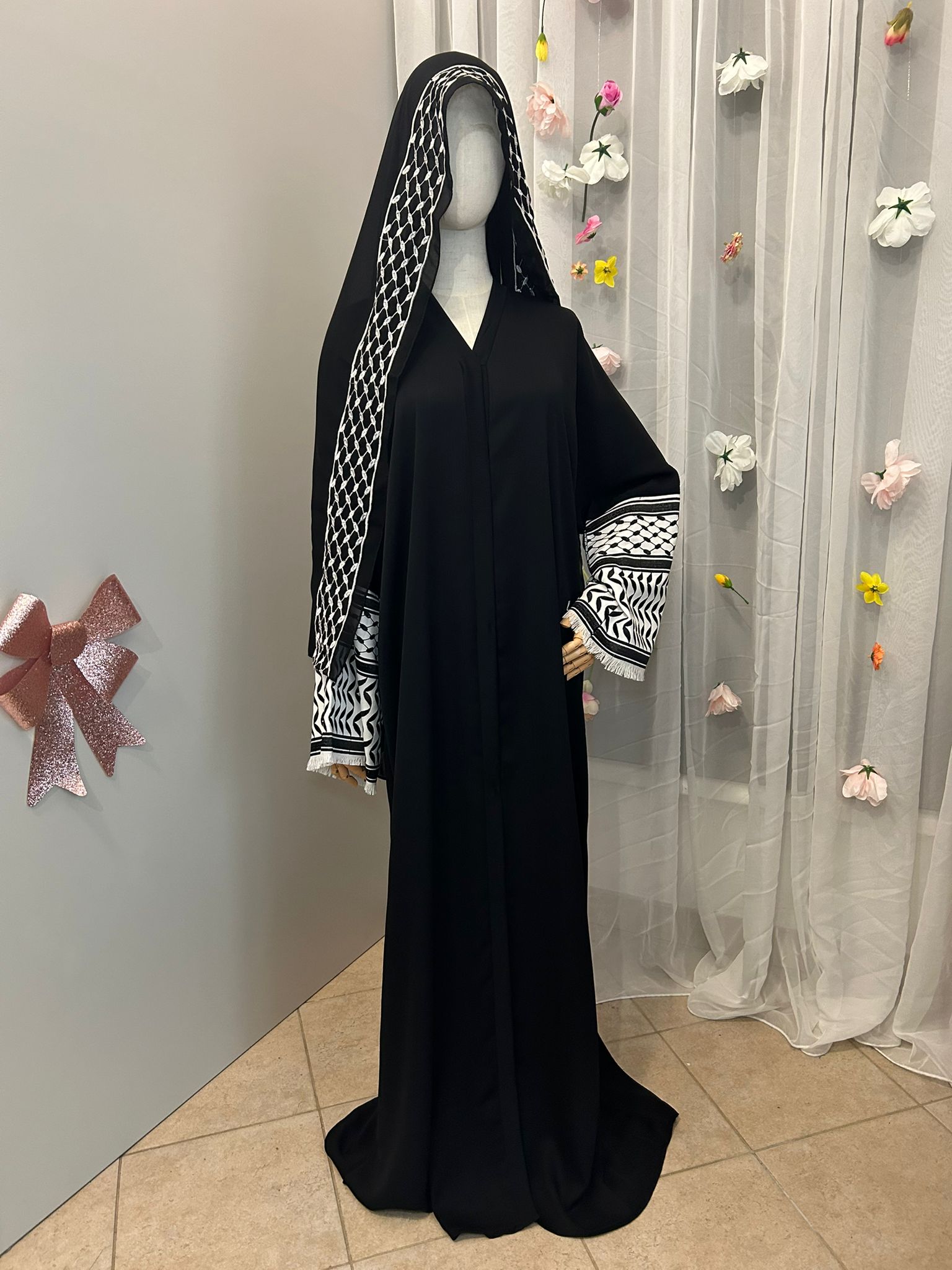 Diese Abaya überzeugt durch ihren hochwertigen Dubai-Stoff, der weich fällt und eine elegante, ruhige Silhouette schafft. Der fließende Schnitt sorgt für ein angenehmes Tragegefühl und zeitlose Eleganz. Kann offen als Kimono oder geschlossen als Abaya getragen werden. Statement piece. <3