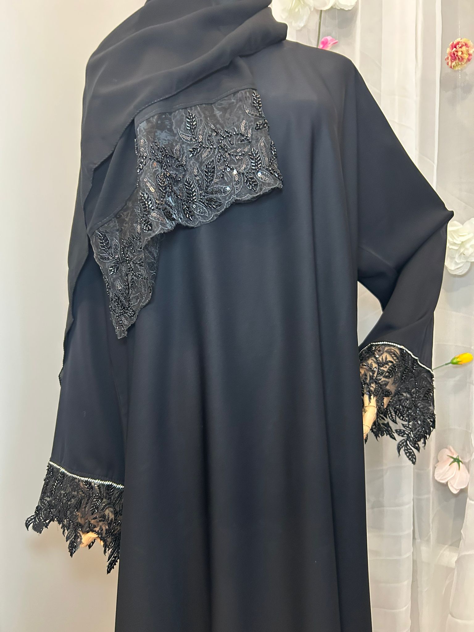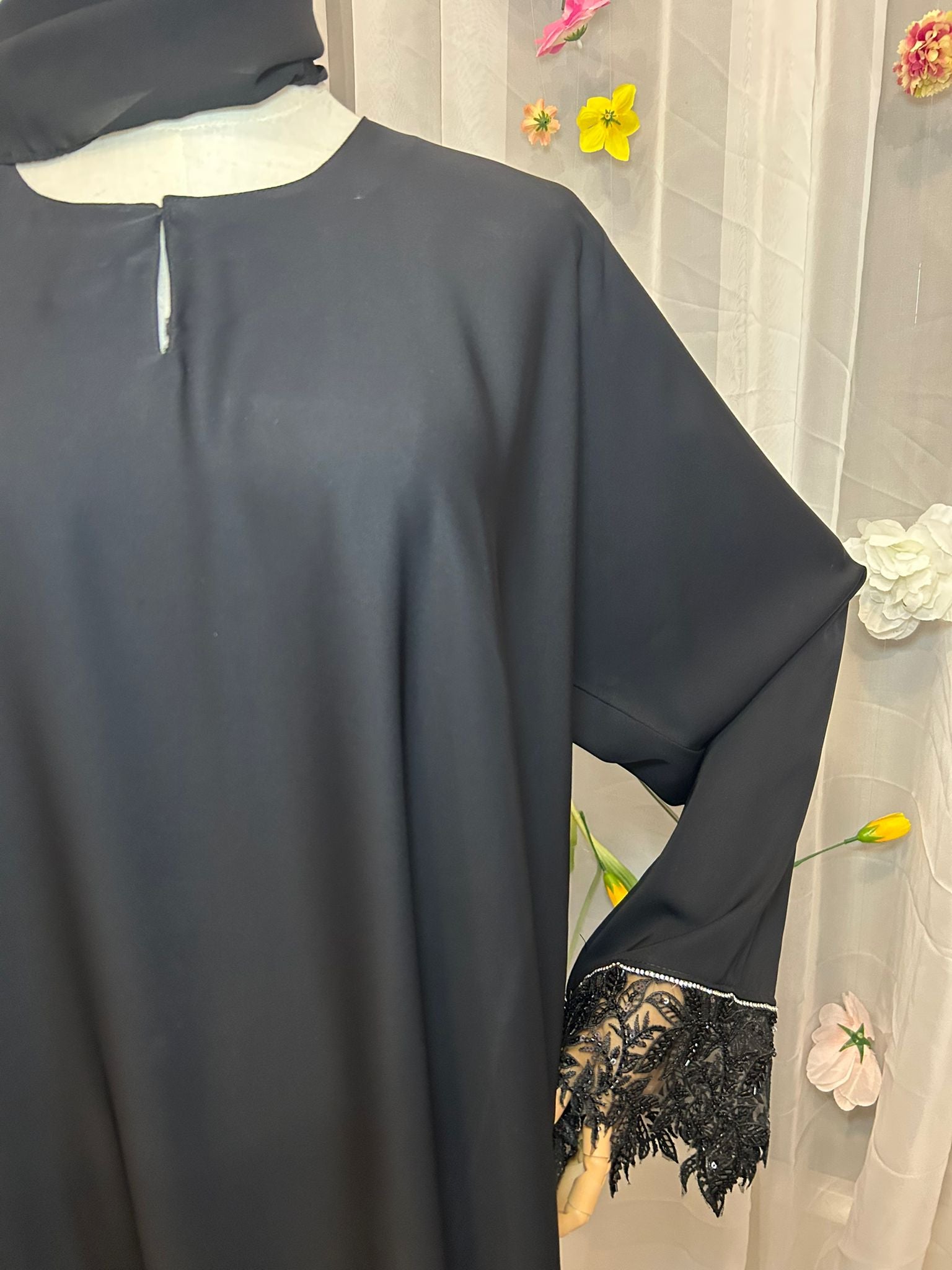 Abaya Jana überzeugt durch ihre schlichte Präsenz und feine, zurückhaltende Details. Der fließende Stoff fällt weich entlang des Körpers und sorgt für ein angenehmes, ruhiges Tragegefühl. Der Schnitt ist locker gehalten und verleiht der Abaya eine elegante Silhouette mit natürlicher Bewegung.