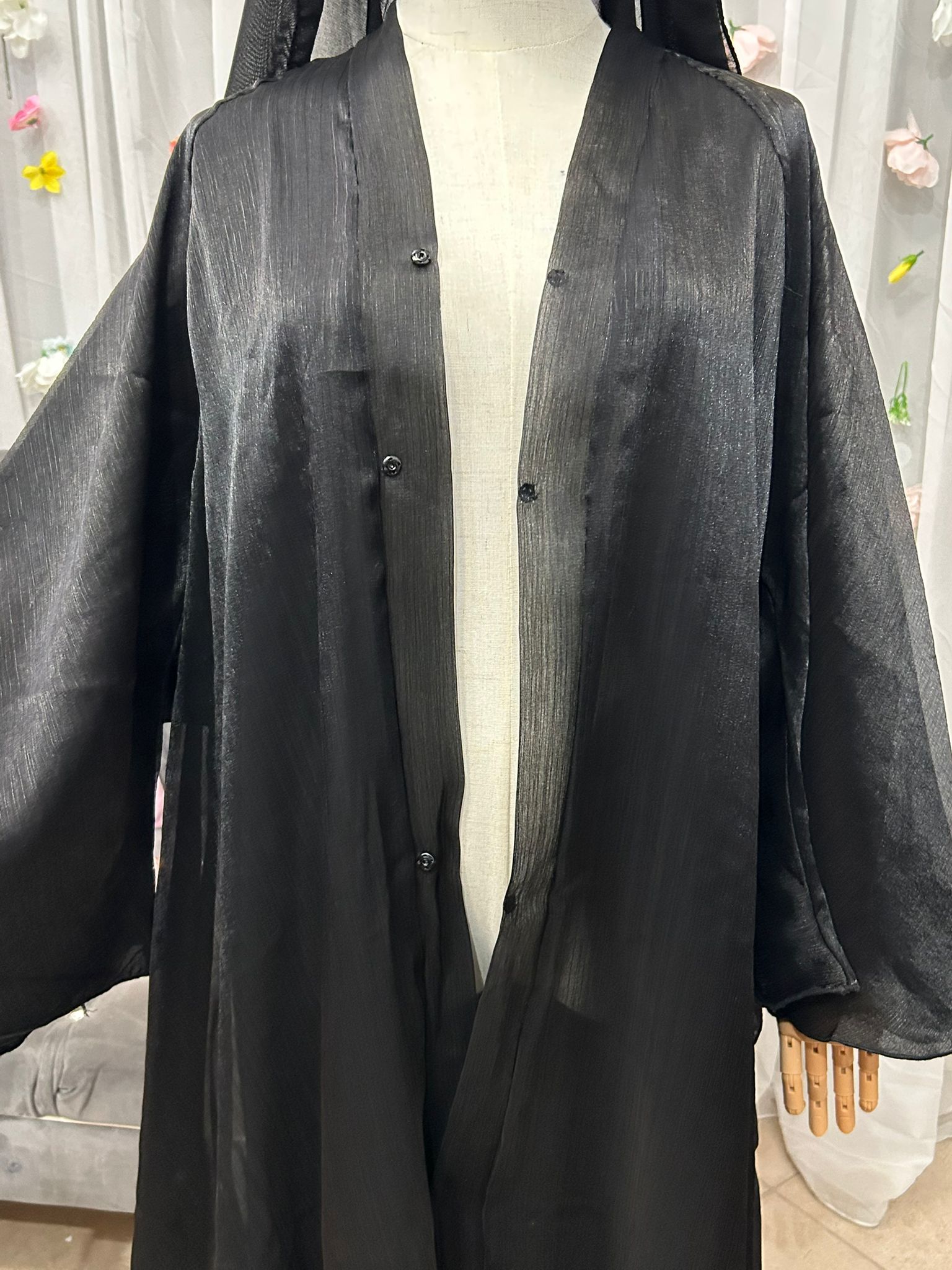 Eine edle, leichte Dubai-Abaya aus hochwertigem Organza-Stoff. Der Stoff schimmert dezent, fällt wunderschön und verleiht einen eleganten, fließenden Look. Die...