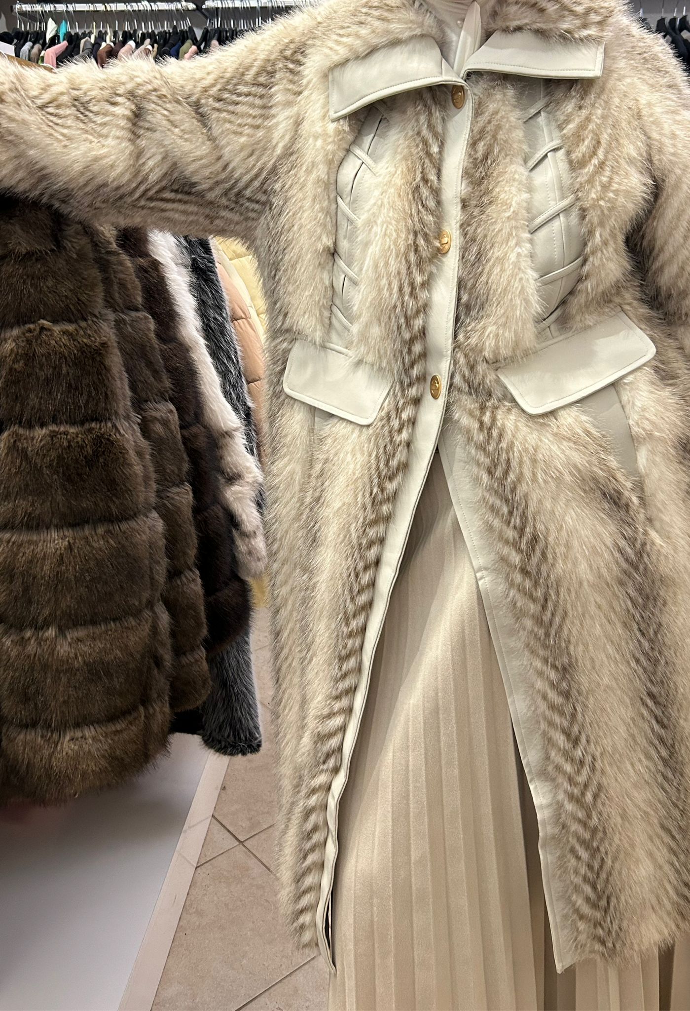 Dieser Mantel vereint luxuriöse Eleganz mit modernem, verantwortungsbewusstem Design. Die edle Felloptik verleiht jedem Outfit eine stilvolle Winter-Aura, während der lange, fließende Schnitt für eine wunderschöne Silhouette und optimale Bedeckung sorgt.