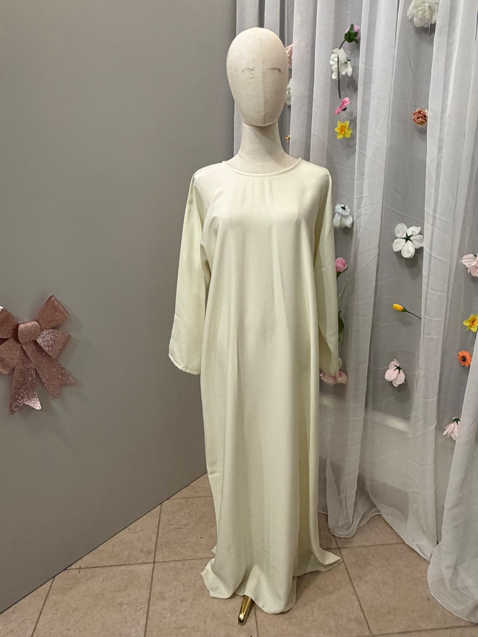 Elegante Abaya mit feinem Schimmer und fließender Silhouette.