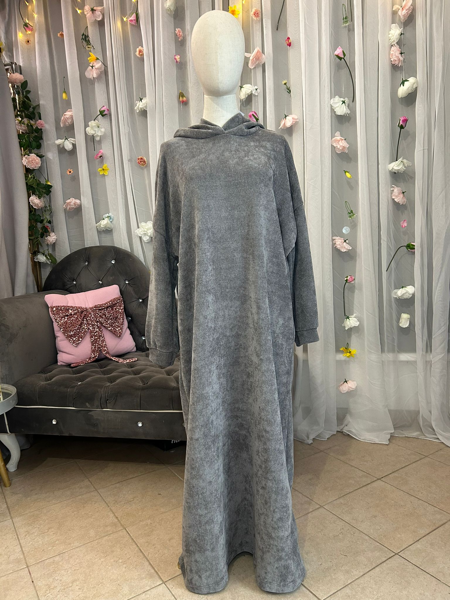 Superweiche Abaya aus elegantem Samtmaterial mit gemütlicher Kapuze. Perfekt für kalte Tage, warm und sehr bequem. Länge: ca. 140 cm