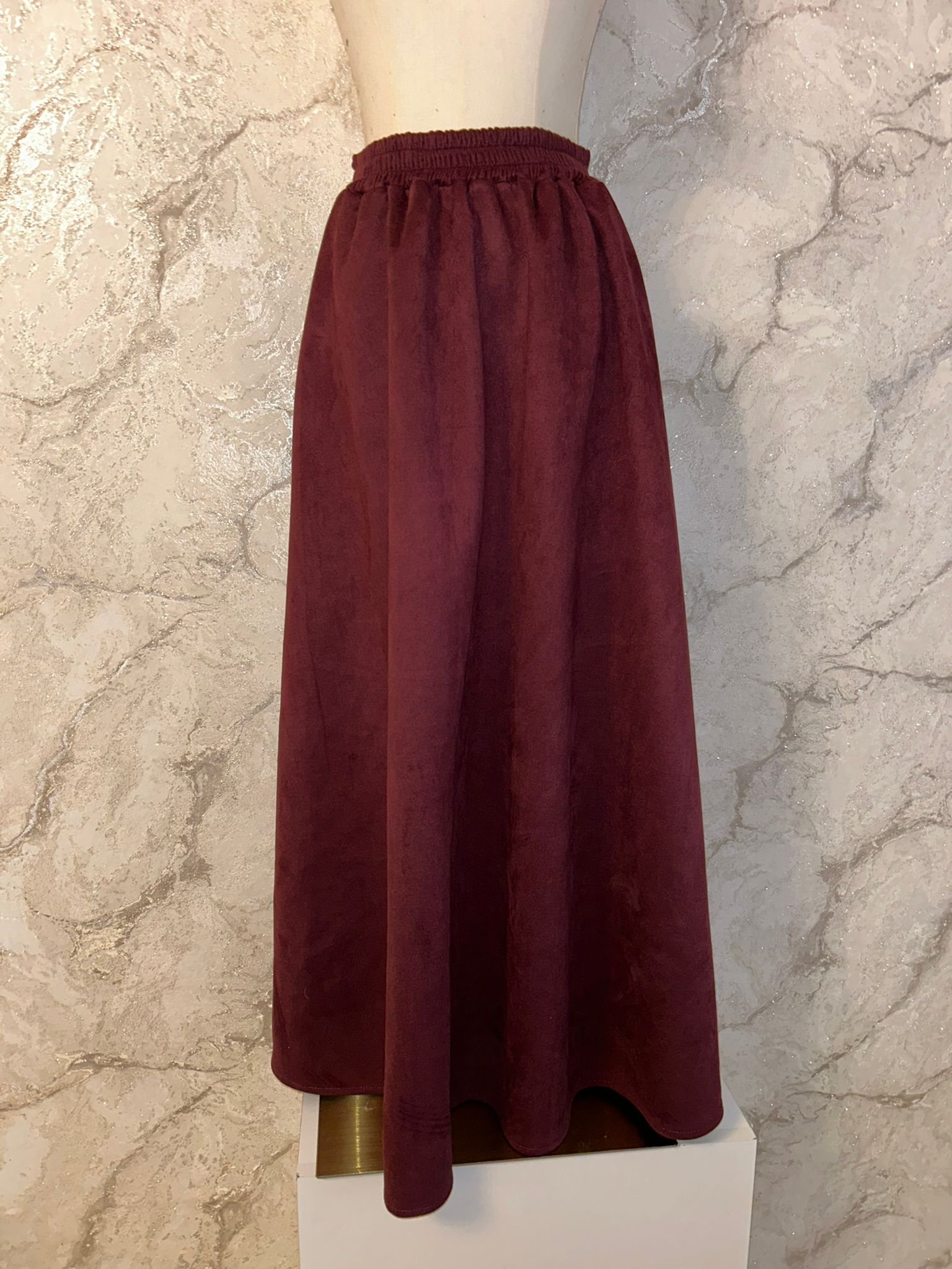 Eleganter Maxirock in hochwertiger Velours-Optik aus Polyester, weich im Griff und wunderschön fallend. Der Basic-Umbrella-Schnitt sorgt für eine fließende A-Linie...